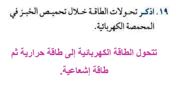 اذكر تحولات الطاقة خلال تحميص الخبز في المحمصة الكهربائية